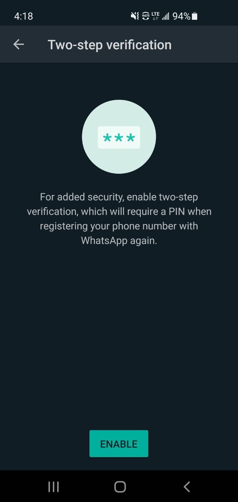 When you set up WhatsApp, you likely registered your account with your phone number. But if you ever lose access to this number (like when switching to a new phone service), whoever controls your phone number can register your number on WhatsApp. Why's this a problem? If someone else registers your WhatsApp number, now it's their number and you'll lose access. To ensure no one else can re-register the account, you can require future registrations to require a PIN code. This is sometimes called two-step verification.