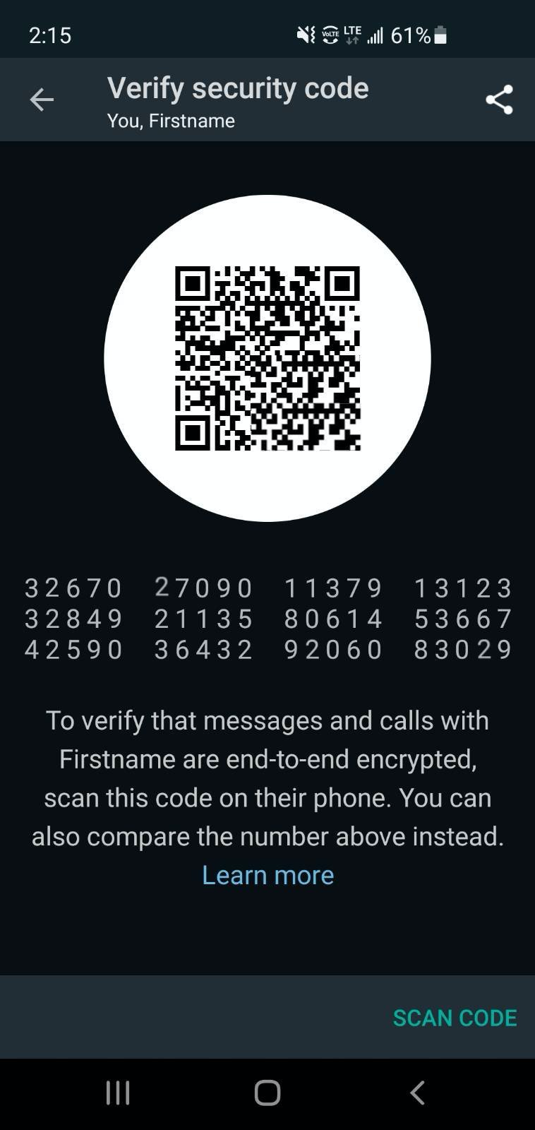 If you’re meeting in person, one of you can tap “Scan code.” Scan their QR code with your camera to verify that your codes match.