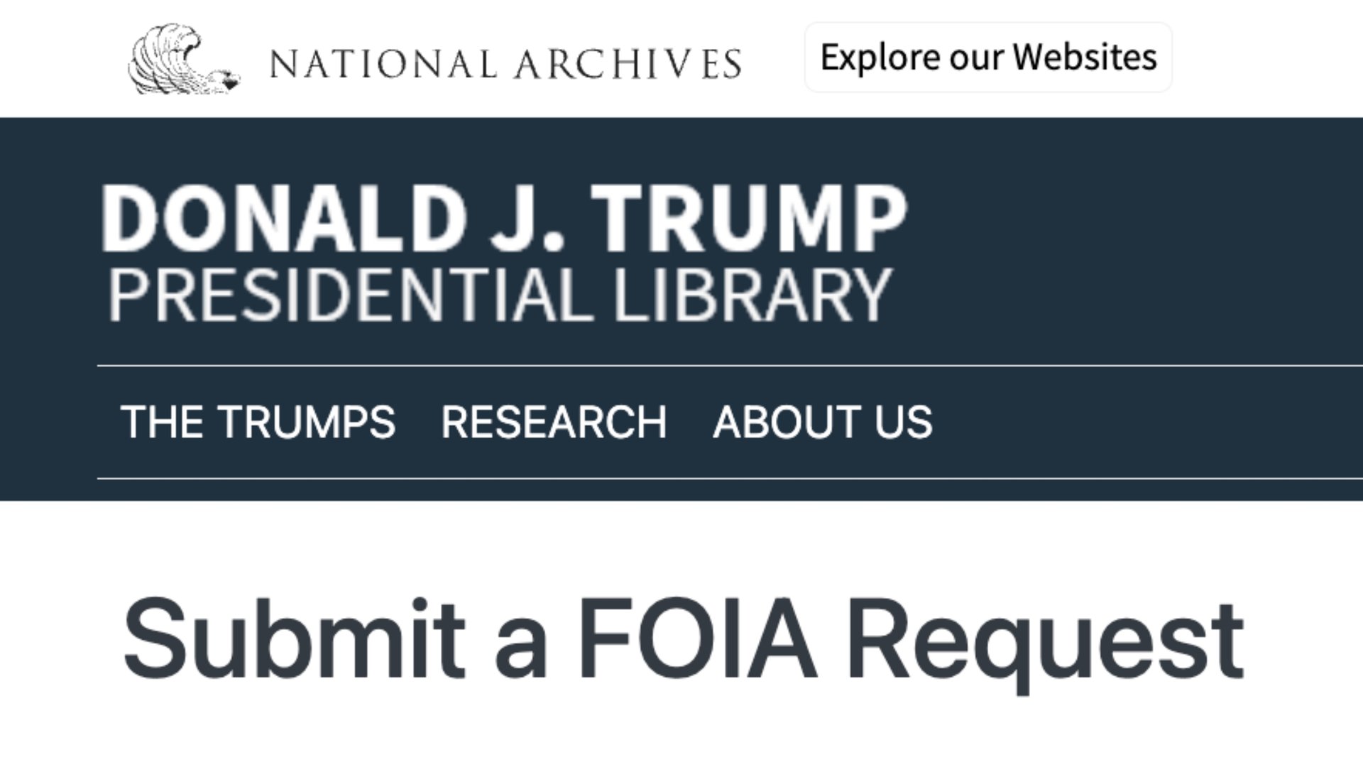 If you want to file your own FOIAs, use this form on the Donald J. Trump Presidential Library website. (Note that this is an official government website run by the National Archives and Records Administration, not affiliated with the museum/hotel/casino that Trump is building in Miami under the guise of being a library.)